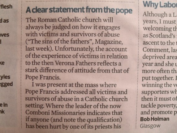 Letter about Comboni Missionaries in Today’s Observer re: “Sins of the Fathers” Posted on 26 October 2014 by markmurray1 Share this: Click to share on X (Opens in new window) X Click to share on Facebook (Opens in new window) Facebook Like Loading... Related